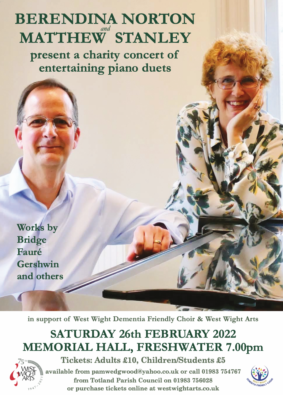 « All Events This event has passed. Charity Concert, supporting West Wight Dementia Choir February 26, 2022 @ 7:00 pm - 9:00 pm « Senior Citizens Christmas Lunch Galos Piano Trio » Add to calendar Google Calendar iCalendar Outlook 365 Outlook Live Details Date: February 26, 2022 Time: 7:00 pm - 9:00 pm