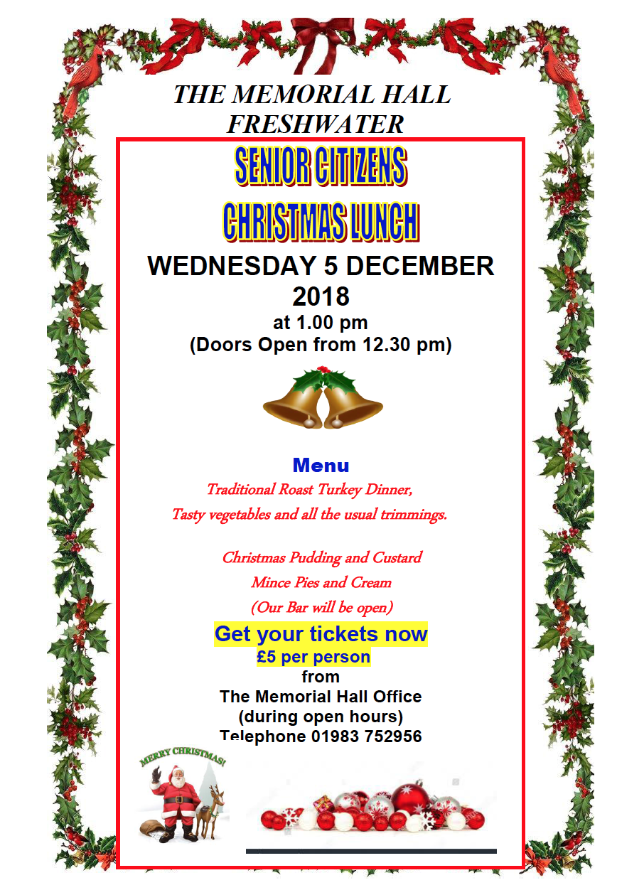 « All Events This event has passed. Senior Citizens Christmas Lunch December 5, 2018 @ 1:00 pm - 5:00 pm « Catrin Finch & Seckou Keita Snow White, PANTO » Add to calendar Google Calendar iCalendar Outlook 365 Outlook Live Details Date: December 5, 2018 Time: 1:00 pm - 5:00 pm